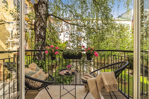 Leiligheten har god planløsning med åpen stue/kjøkkenløsning, plass til spisebord og sofakrok, praktisk alkove og bad fra 2007. Store vinduer fra 2017, 2,6 m takhøyde og tregulv gir en luftig og lun atmosfære. Fra stuen har du utgang til en nydelig balkong på 3 m². God lydisolasjon og gulvvarme i alle rom gjør boligen komfortabel året rundt. Klassisk bygård med grønn og hyggelig bakgård.