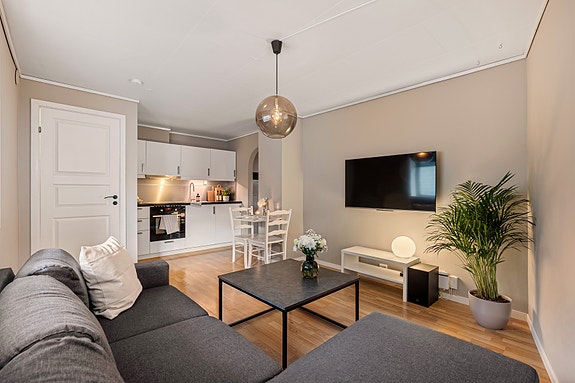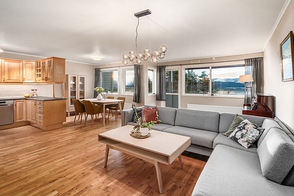 Leiligheten gir deg god plass til både spisebord og sofakrok - perfekt for både hverdagsliv og sosiale sammenkomster.