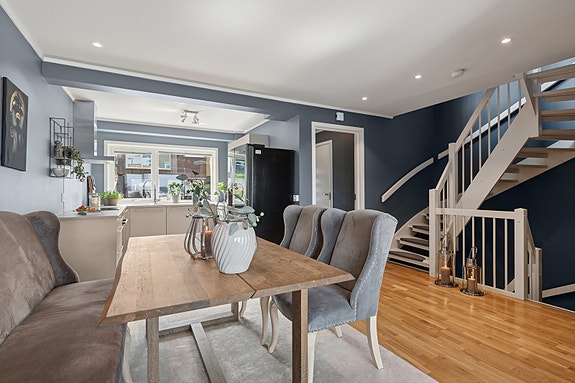 Velkommen til Austadveien 168 - Et stilrent og moderne enderekkehuset fra 2018 perfekt for den moderne familien! Boligen ligger i et barnevennlig og rolig område, og kombinerer funksjonalitet med høy bokomfort.