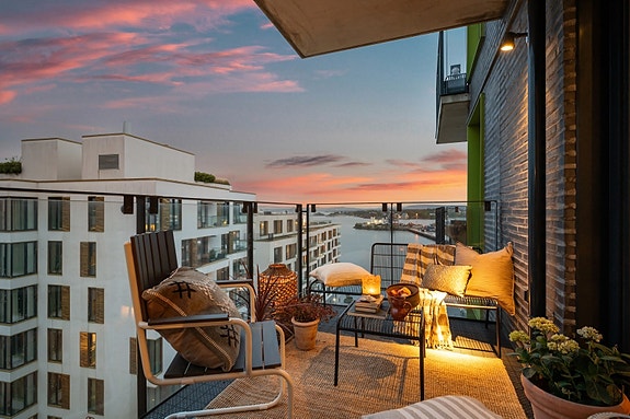 2-roms leilighet i 10. etasje ved sjøkanten - Balkong med utsøkt fjordutsikt - Garasje og heis - Felles takterrasse