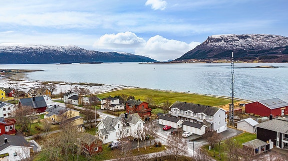 Leiligheten har en åpen stue/kjøkkenløsing og er enkel å innrede etter behov. Fra stuen og terrassen kan du følge med på det rike båtlivet Nesna har å by på-