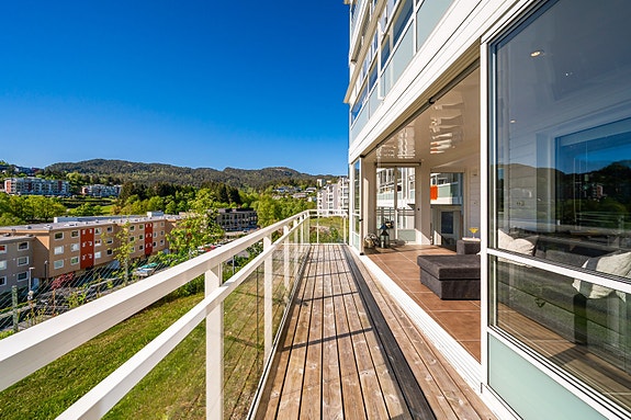 Fyllingsdalen - Flott 2-roms leilighet med stor innglasset balkong - Meget gode solforhold. Parkering på brl. tomt.