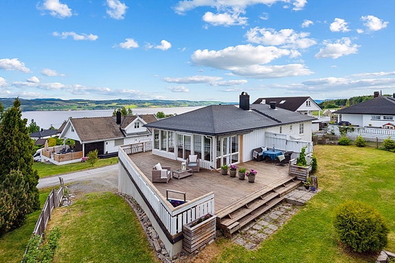 Innbydende familiebolig med dobbel garasje og stor terrasse | Fin utsikt til Mjøsa | Attraktivt og barnevennlig område