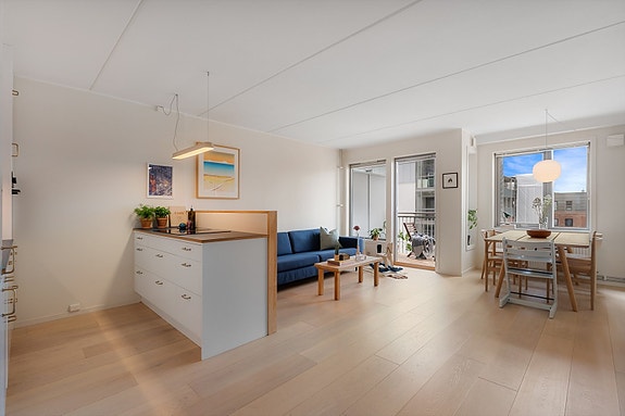 - 1-stavs eikeparkett fra 2022 og lysmalte vegger