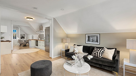 Hyggelig leilighet med særpreg, nyere kjøkken og god beliggenhet nær sjøen og byen