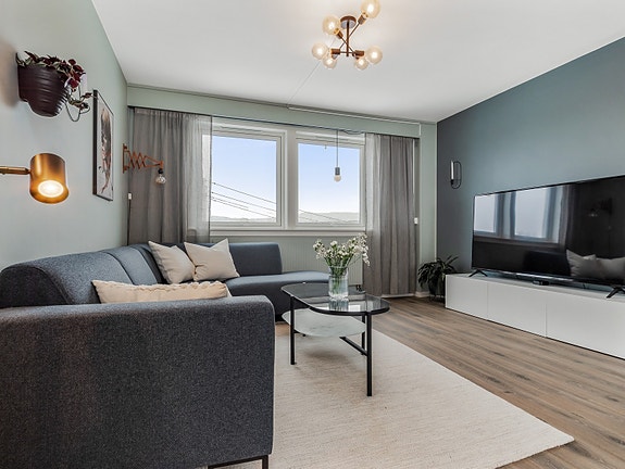 Leiligheten passer perfekt for de som vil inn på boligmarkedet, unge, eldre, pendlere, par eller små familier! Leiligheten har blant annet to soverom, moderne kjøkken og romslig stue. Leiligheten er holdt i duse og flotte jordfarger, og har en god og rolig atmosfære.