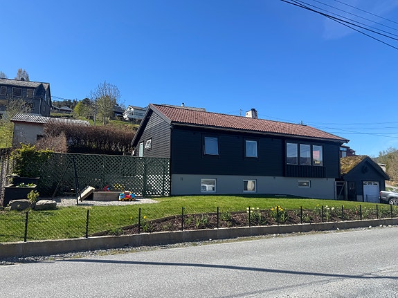 Flott enebolig med 5 soverom og garasje, fint opparbeidet uteområde med gode solforhold.