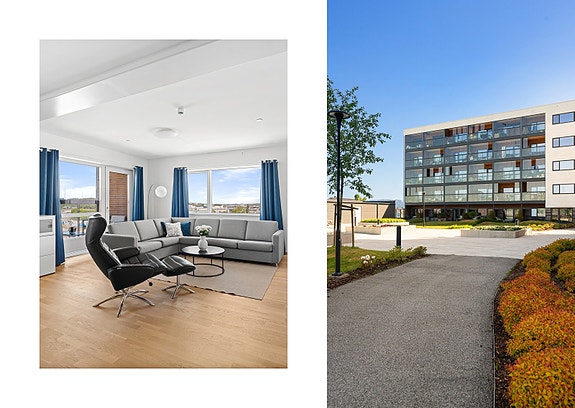 Her bor du fredelig i 6. etasje på enden av bygget med store vindu og flott sikt.