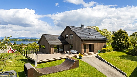 RÅLEKKER ENEBOLIG MED FANTASTISK BELIGGENHET PÅ AUSTEVOLLSHELLA | NYDELIG UTSIKT + GODE SOLFORHOLD | STOR HAGE | GARASJE
