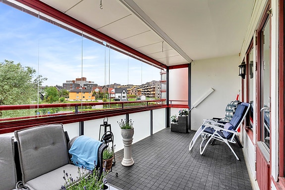 - Solrik sydvendt innglasset balkong på ca. 15 m².