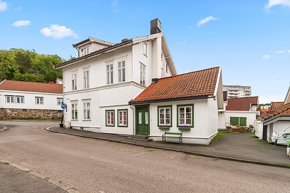 Flermannsbolig til salgs midt i Sandefjord sentrum, i den sjarmerende trehusbebyggelsen i Bjerggata. Eiendommen har en koselig, solrik bakhage og ligger stille til perfekt kombinasjon av byliv og ro.