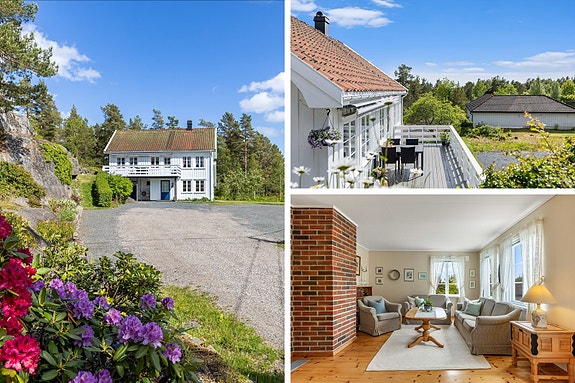 Flott beliggende enebolig i naturskjønne og rolige omgivelser på Bergendal/Gjeving. Romslig tomt med pent opparbeidet hage, stort tun, terrasser og hyggelige uterområder rundt hele boligen. Boligen er svært innholdsrik og inneholder bl.a gang, boder, 2 stuer, kjøkken, 2 bad, vaskerom, 3 soverom og en loftsetasje med rom som benyttes som soverom (ikke godkjent). Det er kort vei fra boligen til fin badeplass i ferskvann, samt Gjeving med flotte badeplasser, marina, turområder og aktiviteter. Herfra går det skyssbåt til vakre Lyngør, samt barnehage og butikk. Det er ca. 15/20 minutter til både Risør og Tvedestrand med et godt utvalg av fasiliteter. Skole, barnehage og idrettsanlegg i Tvedestrand. Ingen boplikt på eiendommen!