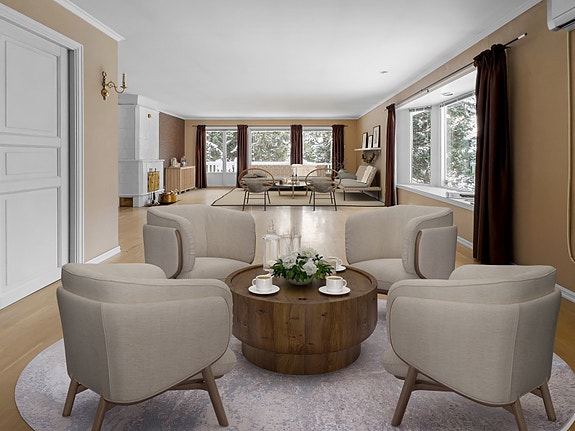 - Variert og smakfull innvendig standard: parkett, laminat og fliser på gulv - malte flater, tapet og panel på vegger