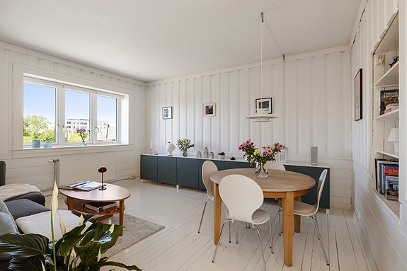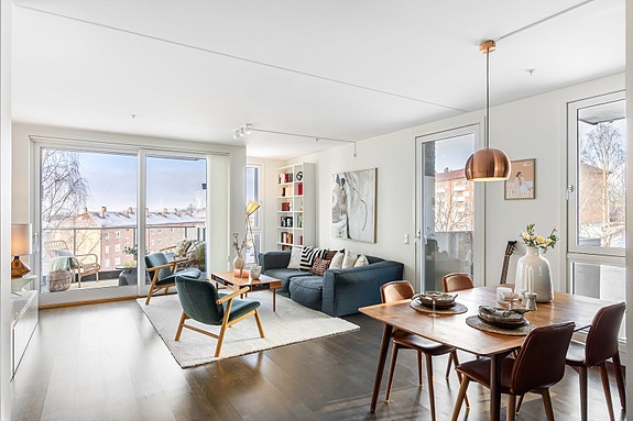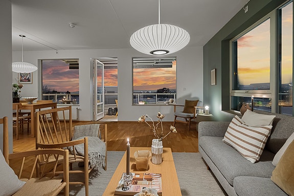 •  Generøs takhøyde og lettmøblert stue