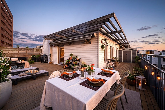 Sjelden mulighet med høy wow-faktor - 3-R topp/ende leil. med 74 kvm privat takterrasse - Nytt kjøkken 2025 - Garasje