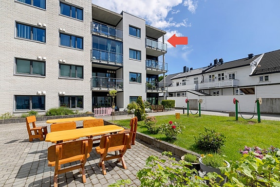 Innbydende 4-roms topp/hjørneleilighet med balkong, samt egen privat del av takterrasse. P-plass og heis.