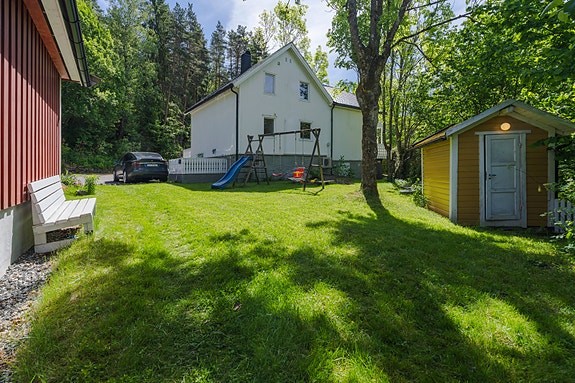 Innholdsrik eiendom med eneboligen, bod "Lydstudio", lekestue og hagebod. Landlig og fredlig beliggenhet.