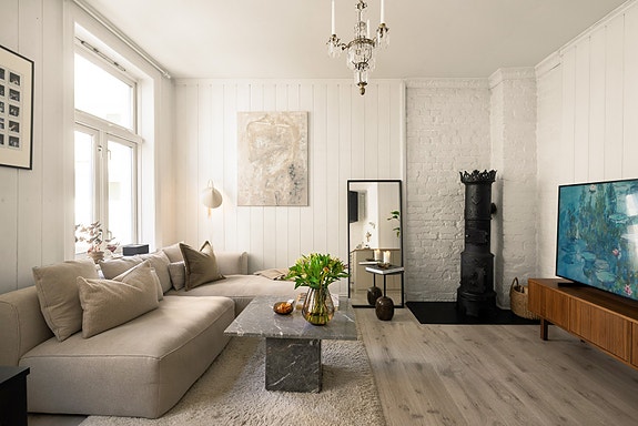 Oskar Braatens gate 4B byr på en romslig og lys leilighet med svært sentral, men tilbaketrukken beliggenhet. Den har en smart gjennomgående planløsning, god takhøyde og praktisk bod i trappegang.