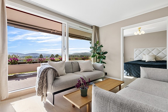 Pen og strøken 4-roms leilighet med attraktiv beliggenhet på Ullern. Leiligheten ble totaloppusset i 23/24 og opprettholder en høy standard med gode vindusflater og moderniserte tiltak. Leiligheten har egen inngang på bakkeplan og har en innbydende planløsning bestående av entré, stue, kjøkken, bad og 3 soverom. Fra stuen og ene soverommet har man tilgang til en vestvendt balkong på 15m2 med hyggelig utsyn mot idylliske grøntarealer. For øvrig disponerer boligen to kjellerboder på totalt 5m2 og parkeringsplass i felles garasjeanlegg.