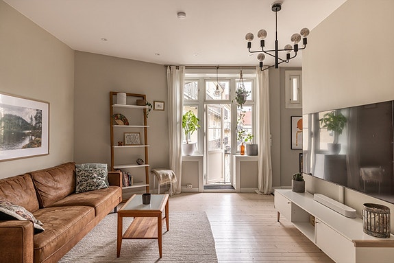 En særdeles pen og lys 2-romsleilighet som kombinerer klassisk sjarm med moderne standard. Leiligheten har gjennomgående planløsning med separat kjøkken, og utgang til en sørvendt brannbalkong vendt mot hyggelig bakgård. Her får du en strøken leilighet som ble pusset opp i 22/23.