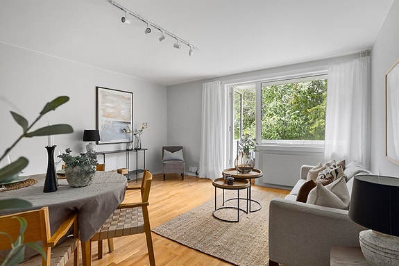 Lys og luftig 2-roms med solrik balkong | Usjenert beliggenhet vendt mot skogholt | Fyring og v.v inkl.