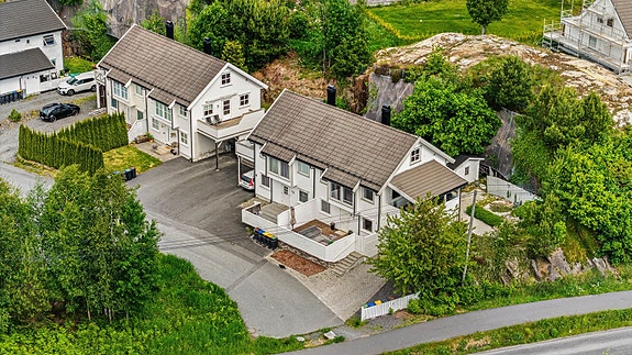 Halvpart av tomannsbolig på Tromøya - carport - elbillader - delvis innglasset veranda - uinnredet loft med potensial
