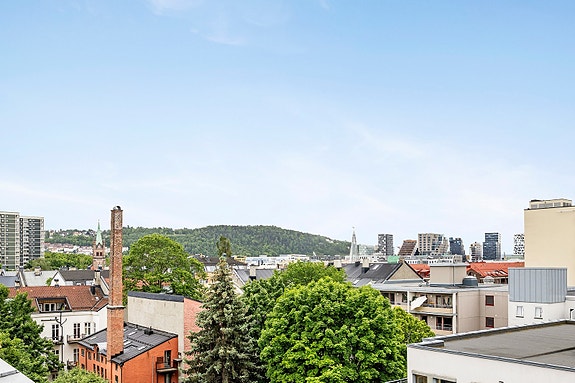 Leiligheten ligger godt til i 7. etasje med flott utsikt over parkområder og mot Ekebergåsen og Barcode. Store uteplasser med sol fra morgen til kveld.