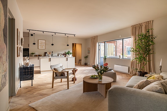 Det er noe med stemningen idet du kommer inn, luften, lyset, roen. Denne selveierleiligheten er en sånn bolig: Full av dagslys, luft og lunhet. Her får du et hjem som kjennes større enn kvadratmeterne skulle tilsi. Planløsningen er smart og åpen, og lyset flyter fritt gjennom de store vindusflatene.