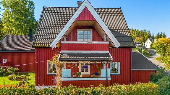 Sjarmerende enebolig med idyllisk og solrik hage. Garasje. Kort vei til tog, barnehager og skoler.
