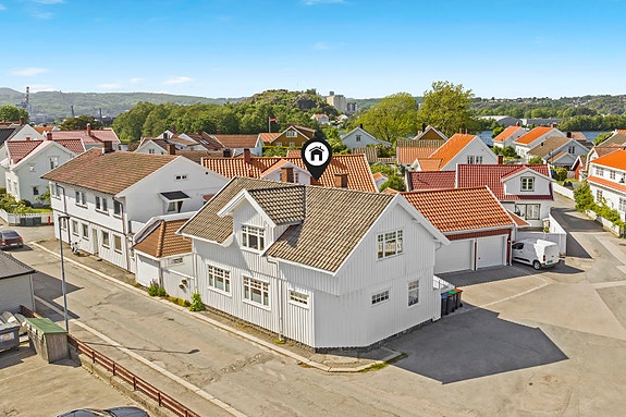 Dette er en sjarmerende eiendom beliggende i et meget attraktivt og idyllisk boligområde. På denne lettstelte tomten står det oppført en enebolig fra 1906 og et koselig uthus innredet med vinterhage med foldedører og galleri/bod. Med eiendommen medfølger bruksrett til 1/3 av garasje som står oppført på naboeiendommen. Eiendommen ligger fint til i koselige gater med eldre trehusbebyggelse på Østre Halsen. Her bor du med gangavstand til bl.a skole, barnehage, butikker, idrettspark, flotte badeplasser og fine turområder som kyststien med sine populære destinasjoner.