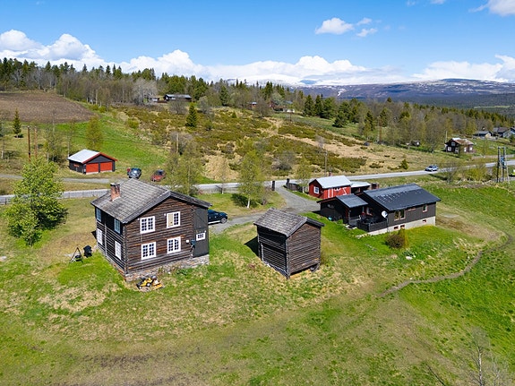 Trivelig småbruk m/fin beliggenhet langs Skåbuvegen | Våningshus, kårbolig, stabbur & skåle | Tilhørende seter | Utsikt!