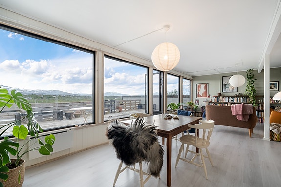 - Utgang til stor terrasse med gode solforhold og utsikt