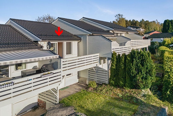 Vestvendt rekkehus i stille og populært område. Meget sentralt. Gode solforhold. Garasje