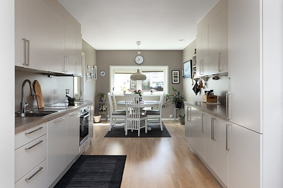 Det er integrerte hvitevarer som kjøl-/fryseskap, oppvaskmaskin, stekeovn, platetopp og komfyrvakt.