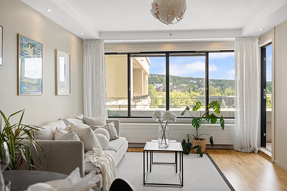 Leiligheten fremstår moderne med gjennomførte farge- og materialvalg. Den åpne og arealeffektive planløsningen gir en luftig og behagelig romfølelse. Fra stuen er det direkte utgang til en solrik, sydøstvendt balkong på ca. 6 kvm - et perfekt sted for morgenkaffen eller sene sommerkvelder. I tillegg har man tilgang til en felles takterrasse med flott utsikt over nærområdet.
