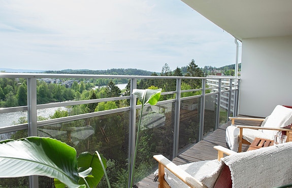 Lys toppleilighet på Borgen i Asker. Solrike verandaer og utsikt over Bondivannet