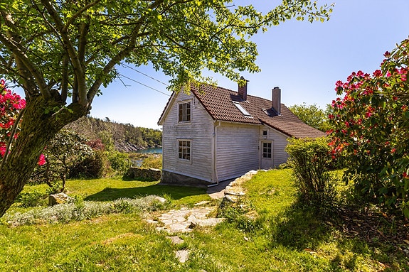 Kort gange ned til naustet og til egen badeplass som ligger like nedenfor boligen.