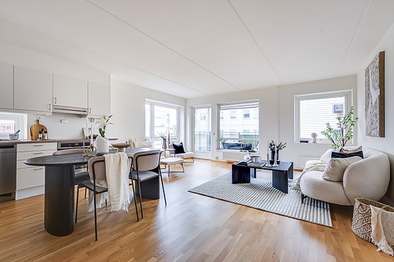 Kvadratmeterpris tilsvarer prisantydning pluss fellesgjeld per kvadratmeter (p-rom eller BRA-i). Prisene i grafen er avrundet til nærmeste 1000 kr.