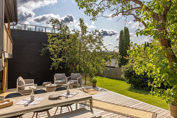 - Skjermet hage med terrasse på 45 kvm