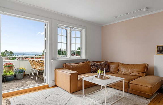 Sjelden mulighet: Idyllisk familiebolig i hageby med gode solforhold, sjøutsikt og hage. Parkering med lader.
