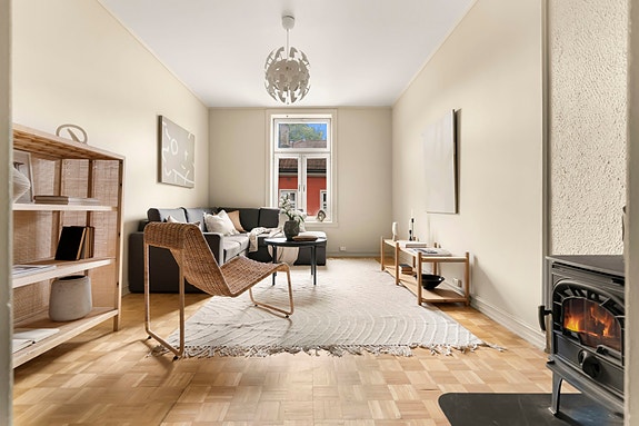 Attraktiv 3-roms selveierleilighet sentralt på Grünerløkka, og like ved Birkelunden, med alt bydelen har å by på. Leiligheten er gjennomgående med lys fra to sider, og har en effektiv og god planløsning. Praktisk gang, pent flislagt baderom, kjøkken med rikelig med oppbevaringsplass og plass til spisebord, to fine soverom og hyggelig stue med peisovn.