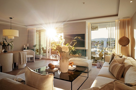 Leiligheten er oppgradert med en uovertruffen sans for kvalitet. Leiligheten er gjennomført med høy standard, nøye utvalgte materialer, smarte løsninger og delikate fargevalg. Her kombineres design med ideell beliggenhet ved sjøen, og i hjertet av et vibrerende byliv, likevel skjermet for støy. Velkommen til ditt nye hjem, en perfekt kombinasjon av luksuriøs hotellstandard og varm hjemmekomfort.