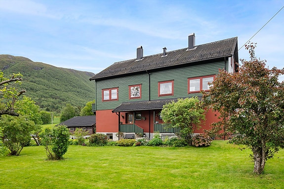 En bolig med 2 godkjente boenheter som fremstår som en hel to-mannsbolig med blant annet 2 kjøkken, 3 bad, separat vaskerom, 2 stuer og totalt 6 soverom! Boligen går over 3 plan, og var opprinnelig benyttet som butikk . Utvendig er det oppført en romslig dobbelgarasje samt en utebod.