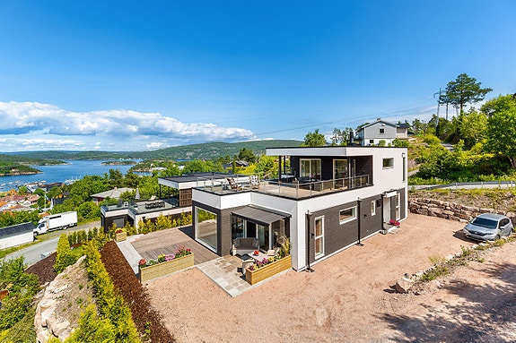 Boligen har høy standard, gjennomtenkte løsninger og mange muligheter. Her får du hele 342 m2 bolig fordelt på 3 plan, men likevel alt du trenger på hovedplanet, som er på 142 m2.