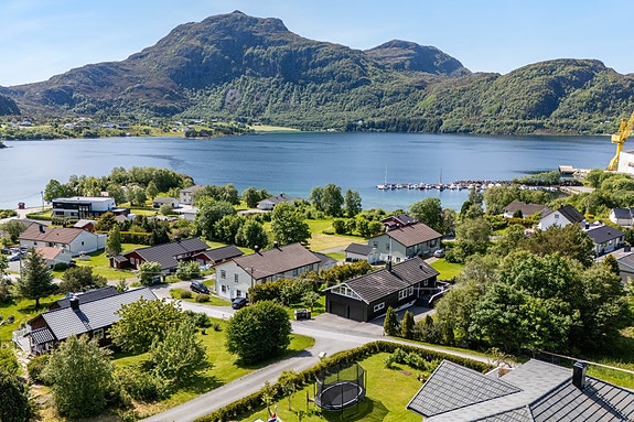Dobbelgarasje med elektriske portåpnere. Tomten er på ca. 1,2 mål og har gode solforhold og utsikt mot fjord og fjell. Kort vei til skole, barnehage og idrettsanlegg.