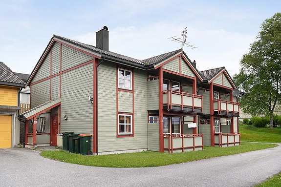 Leiligheten er beliggende i 2. etasje og har direkte adkomst fra nordsiden av boligen