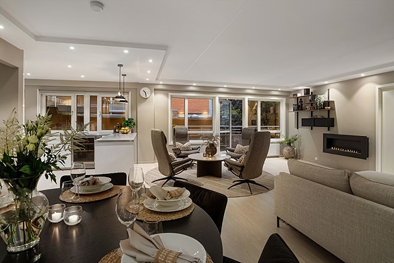 Leiligheten ligger ut mot en rolig sidegate og fremstår som skjermet. Med stor balkong på ca. 19 kvm - perfekt for morgenkaffen, en god bok, eller ettermiddagssolen. Den åpne stue- og kjøkkenløsningen med store vindusflater gir en lys og luftig atmosfære.