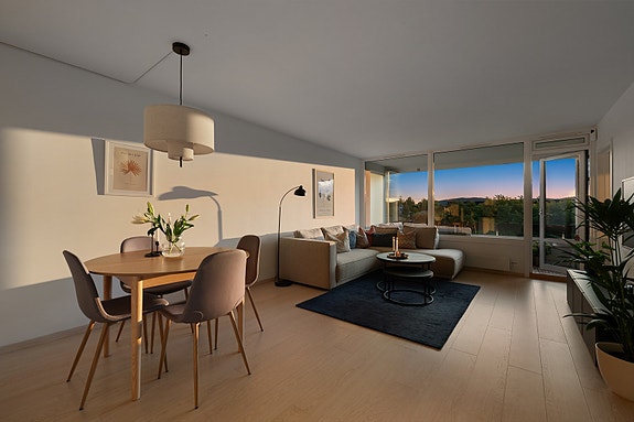 Velkommen til Landingsveien 88 - en moderne og smakfull 4-roms leilighet m/ettertraktet beliggenhet & nydelig utsyn mot grønne omgivelser. Leiligheten har en av de beste beliggenhetene i bygget - tilbaketrukket m/svært gode solforhold. Gjennomgående & luftig planløsning m/store rom & flere soner gir leiligheten et lyst preg & en behagelig atmosfære. Her bor du rolig & tilbaketrukket til, samtidig som du har "alt" du trenger i umiddelbar nærhet - marka, skoler, bhg, servicetilbud & kollektiv T. En perfekt kombinasjon av byliv & natur!