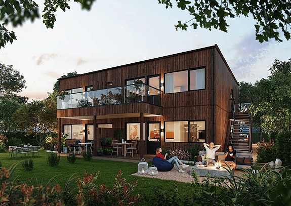 For AHUS Norge presenteres Borås - Kleivene. AHUS Norge er ett nytt, spennende og standardisert boligkonsept for Norge. Konseptet baserer seg på standardiserte boenheter med kort byggetid og arealeffektive boligløsninger med lettstelte tomter.