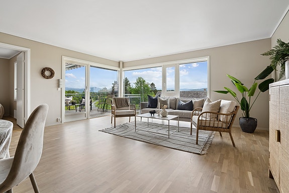 Lys og innbydende 3-roms selveierleilighet med fin beliggenhet | Parkering i p-kjeller| Flott utsikt | Balkong på 16kvm